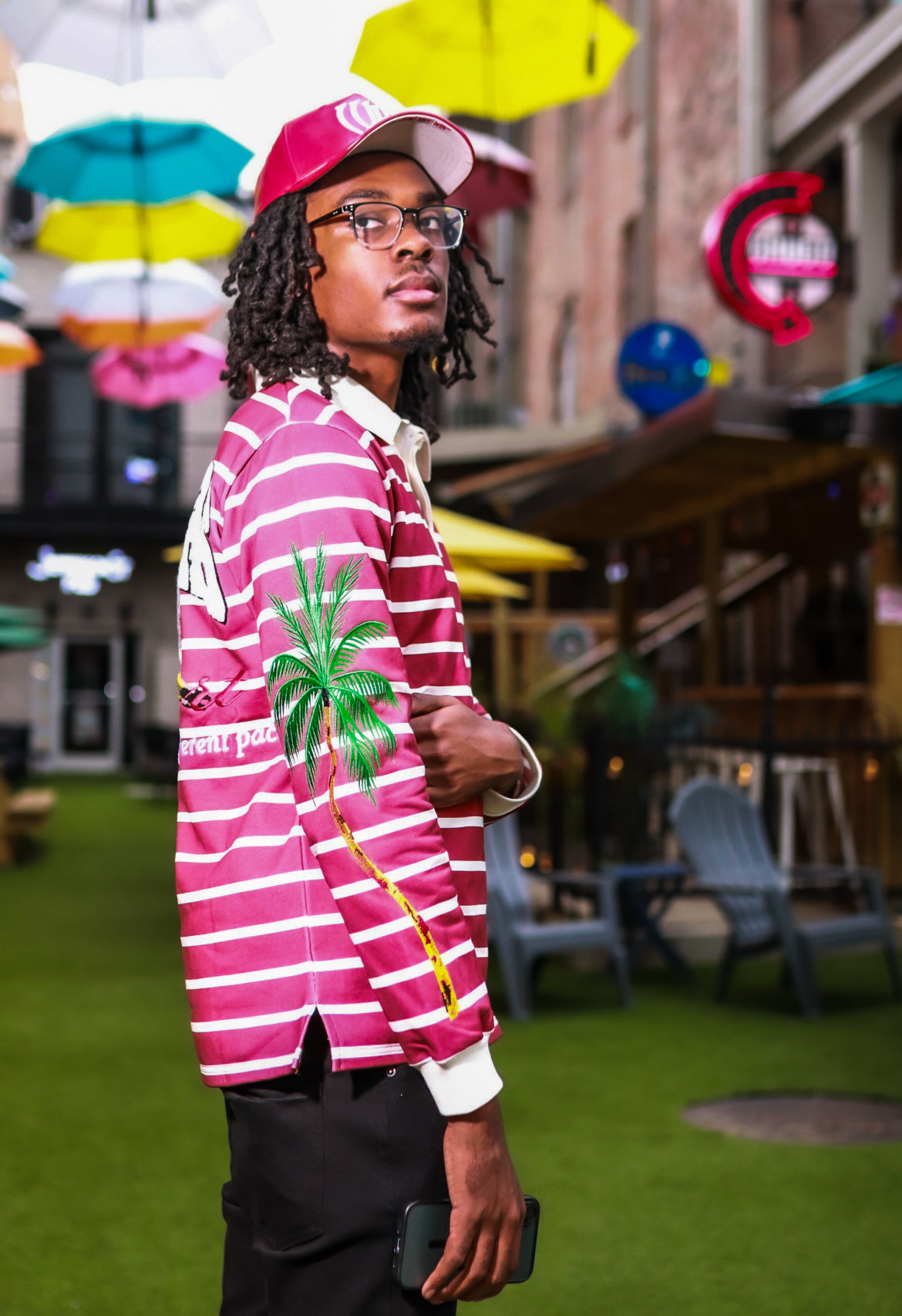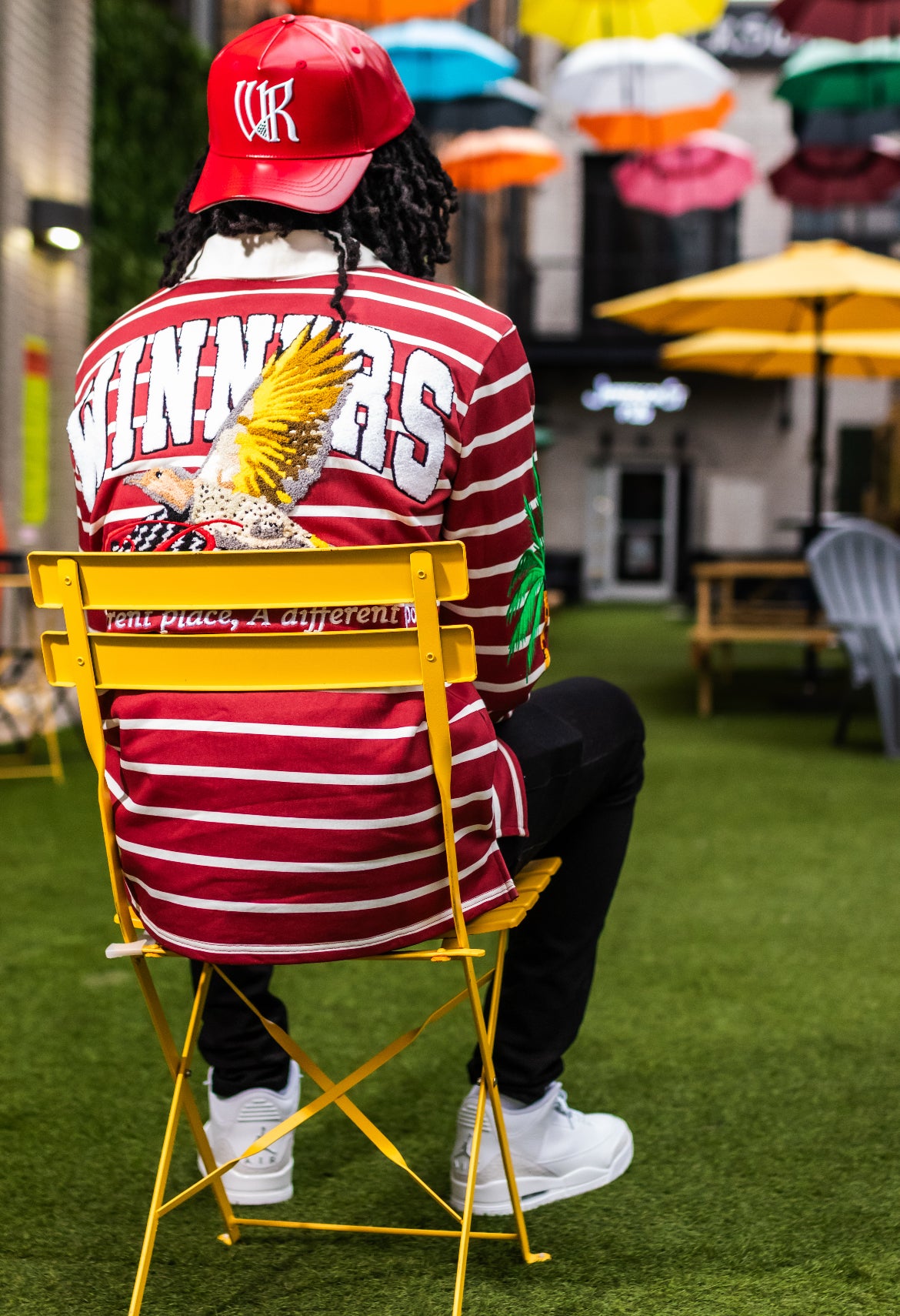 “The Resort Rugby fuses classic craftsmanship with luxury streetwear style. Made from Firm 400gsm 100% cotton, each piece features bold hand-artieched stripes, giving it a unique, artisanal edge. Classic Chenille Print of the Back. Durable, and effortlessly statement making this street-ready sophistication like no other. Fits true to size; for a relaxed look, size up.”